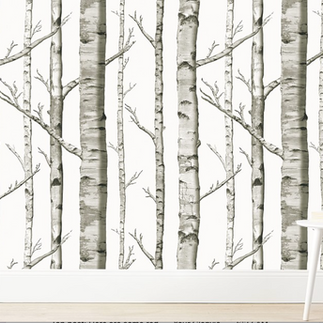 Left to right: Wallpaperie Birch Forest via Pottery Barn Kids; Pacific Northwest by Chasing Paper; Mid-century Trees by Happywall.